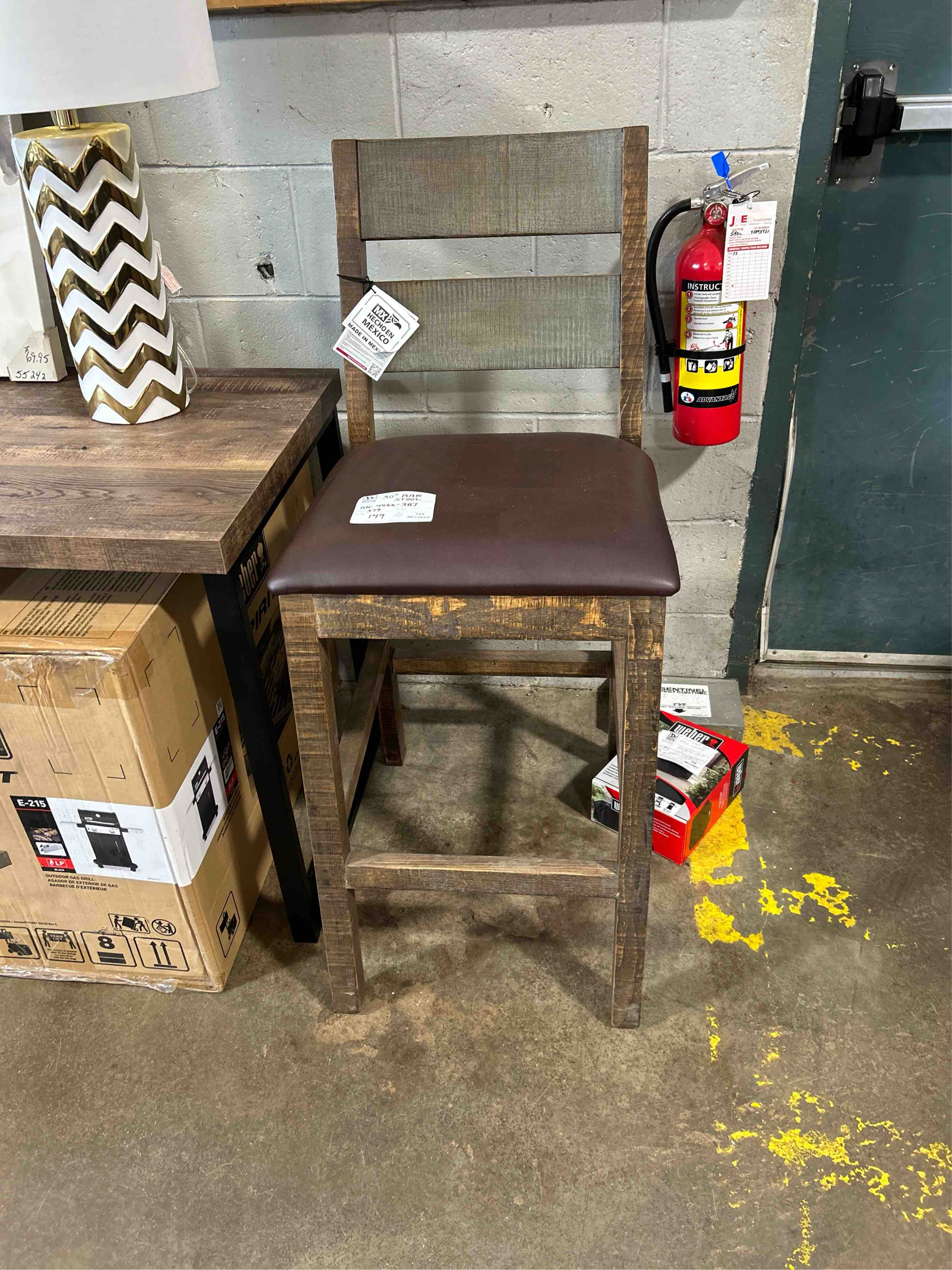 - Eight-step hand rubbed finish - Hand brushed, painted and given a final clear lacquer nitrocelullose coating that protects colours and is smooth to the touch - Bonded leather on seat is durable and easy to clean - Seat is filled with hight density foam for your comfort - Feature foot rest - Can be used for bar height tables - Wood type: 100% solid pine DIMENSIONS: