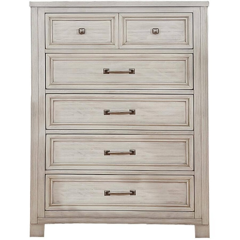 Made of Solid Pine Wood, Pine Veneer, Engineered Wood, and Plywood Construction Dark Brushed Silver Metal Hardware Antique White Oak Finish